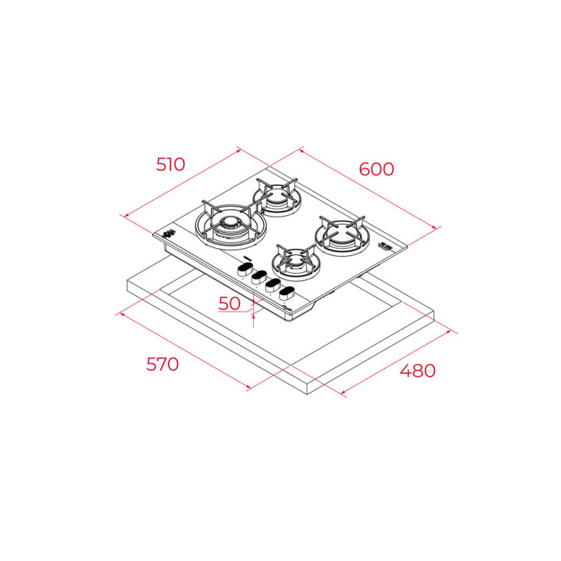 Skleněná plynová varná deska 60 cm z edice Van Gogh