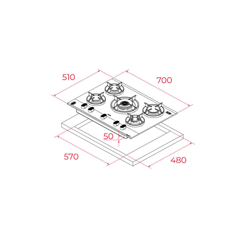 Skleněná plynová varná deska 70 cm z edice Van Gogh